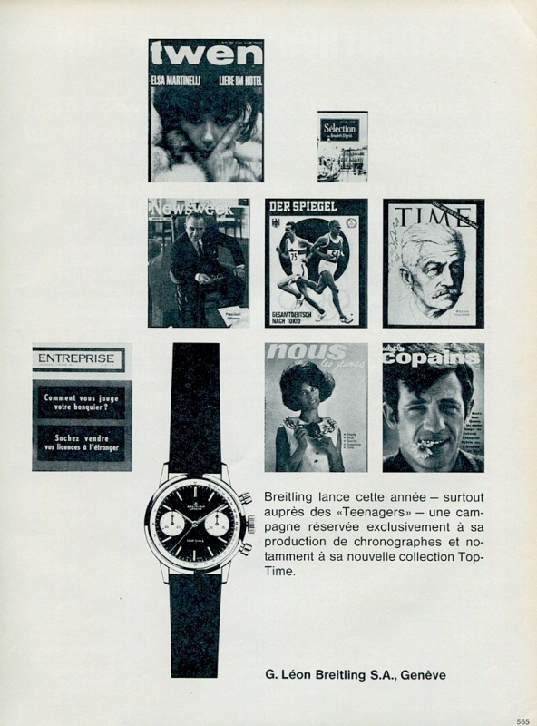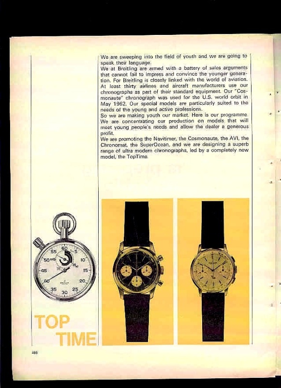 It was created with the specific aim of moving chronographs away from an older professional market that Breitling had been selling to in the Forties and Fifties and was Breitling embracing the Swinging Sixties, with a deliberate shift in branding aimed at a younger market and women as well.
