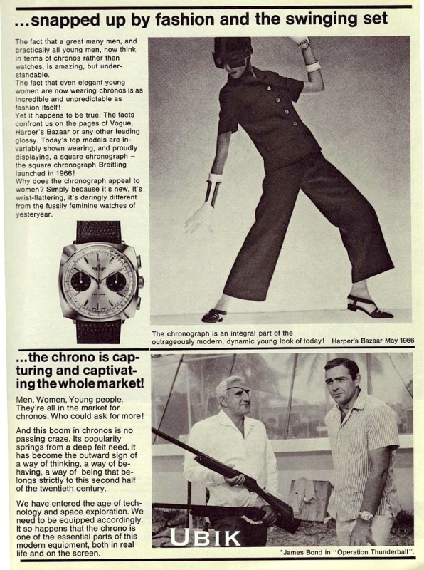 Breitling promoted it in fashion magazines like Vogue and the large chronograph was specifically also aimed at the slender female wrist, quite ahead of it's time given the current vogue for women to wear men's wristwatches.