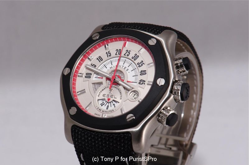 I think this watch achieves a nice mixture between classicism - the dial, and modernity - the shape of the pushers and the large dimensions of the watch.