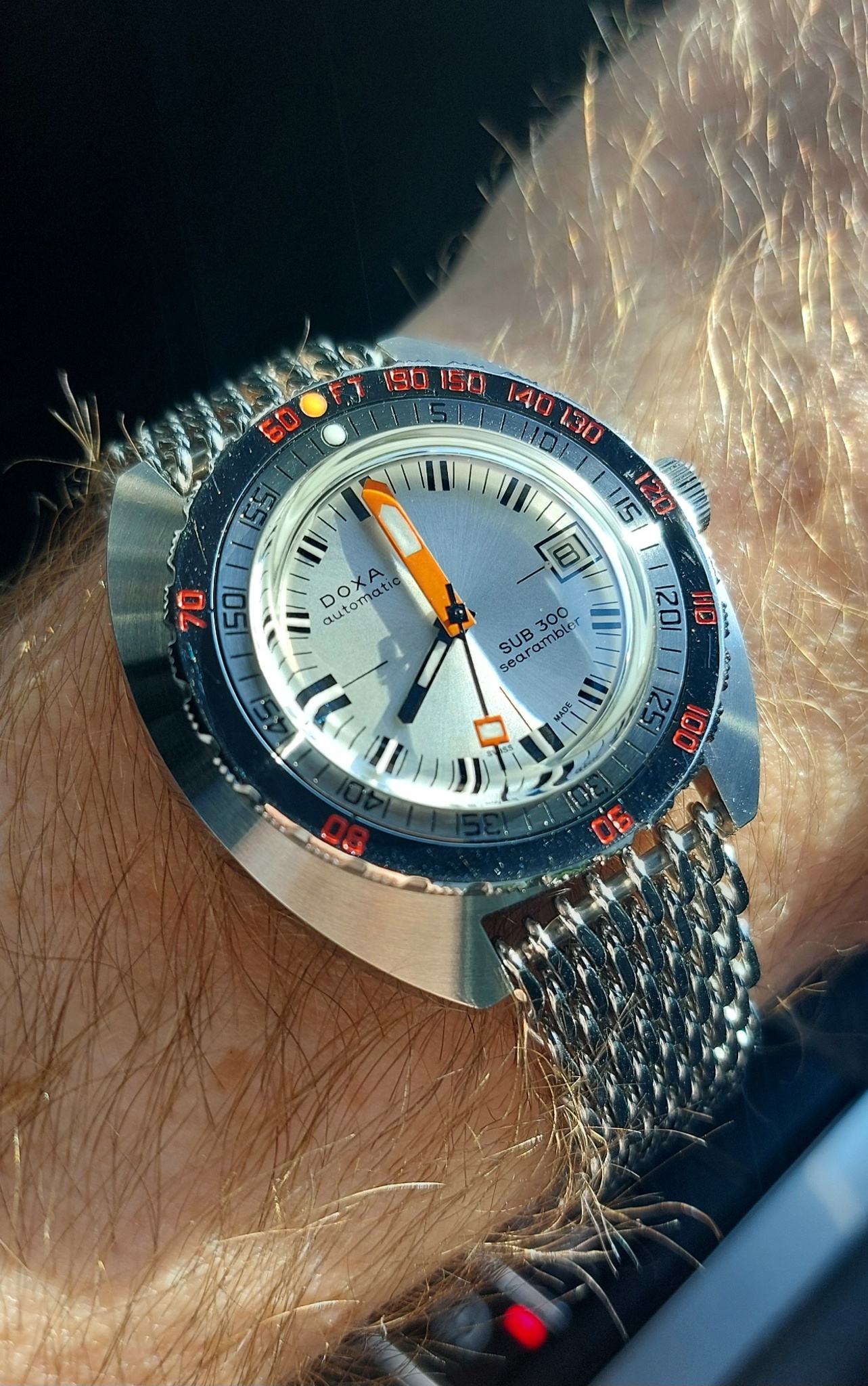 The sub300 is a sweet watch and a joy to wear, I'm sure you will love it. The clasp is the stamped one, to adjust the bracelet you just need to move the bar to another hole (just push it with tooth pick and move it a hole closer to the outside where there are 4 holes for this purpose).