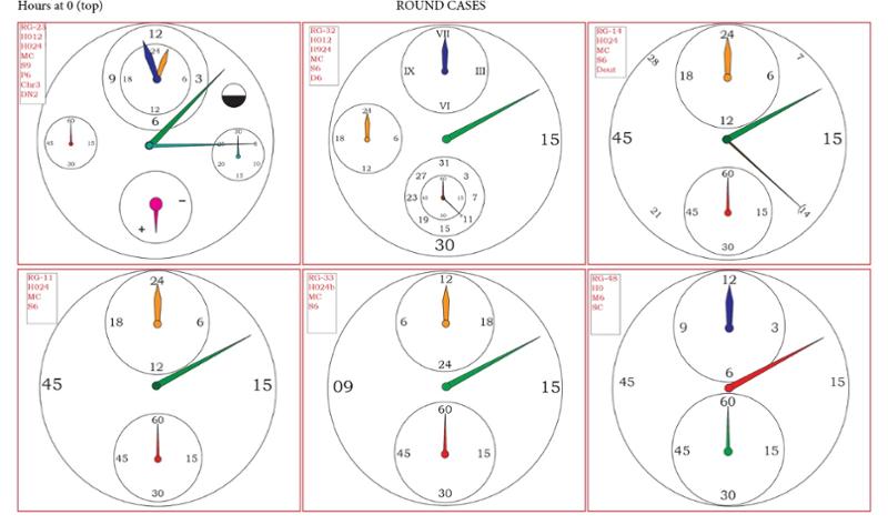 I have spent about 4 days collecting and creating graphics for Regulator Watches - watches which display the time on hands with separate shafts (arbors). In addition, we've found many combinations of revolving hours, jump hours, and other novel displays. Who would have thought it could go this far? Not me. And certainly not my wife, who feels I am obsessed (and not for the first time). Plus I have a stiff neck. And I woke up at 5 AM with a jolt, realizing that I'd forgotten the Hybris Mechanica! Then Magnus found one missing, and I found another Genta variation ... and so we are to 69.