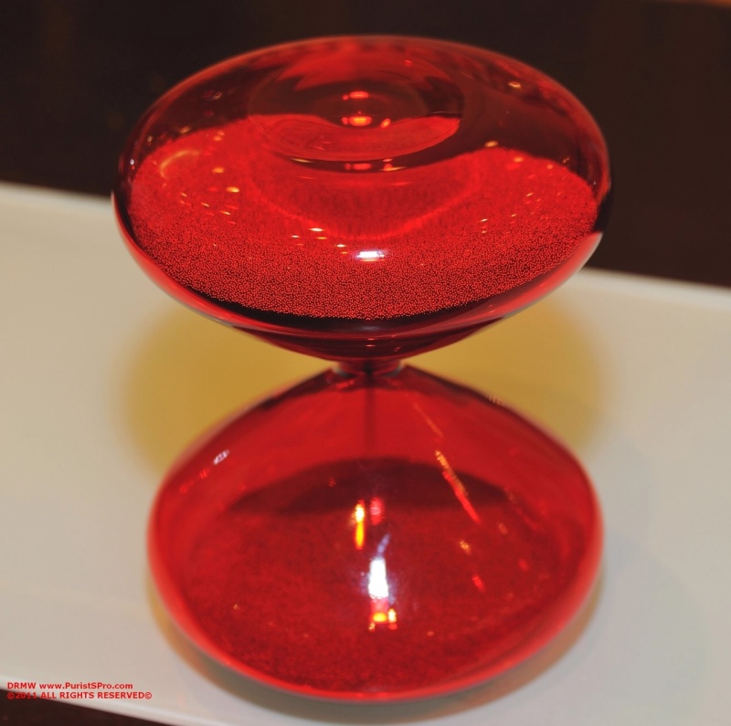 AD: The Hourglass is pretty accurate, with that being said, we give it a tolerance of 2-10% . For the watch aficionado, it may not sound accurate, so let’s discuss and understand why. The nanoballs are made out of stainless steel and typically due to the environment, for example the light. If it is near a window with light instead of a neutral environment , the temperature is going to be higher there. Typically the stainless steel nanoballs will delay about 7 beads so less going trough from one bulb to the other. So the timing will change from one environment to the other. So usually we are more like +- 2% but due to examples just given we give it a broader tolerance. With that being said, in all the meetings I’ve had around the world since the launch , the hourglass is more about time passing by.. you can actually see time passing by. And when I at some point in the meetings, I when I flip the hourglass we all end up staring at it. It’s a very mesmerizing process!