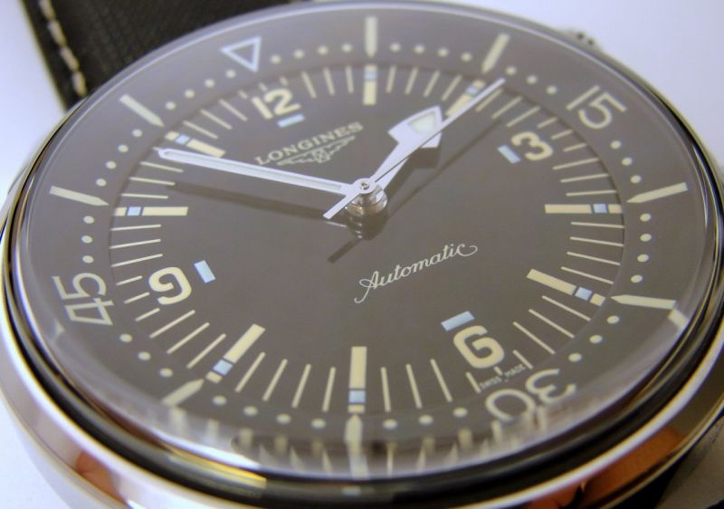 ...the photo of your Longines. I love mine, and wear it often. I think Longines has done well with their historic reissues of classic pieces like the Conquest, Weems, and my favorite -- their 42mm dive watch, which Longines call the Legend Diver in their catalog. Here's a photo of mine below.