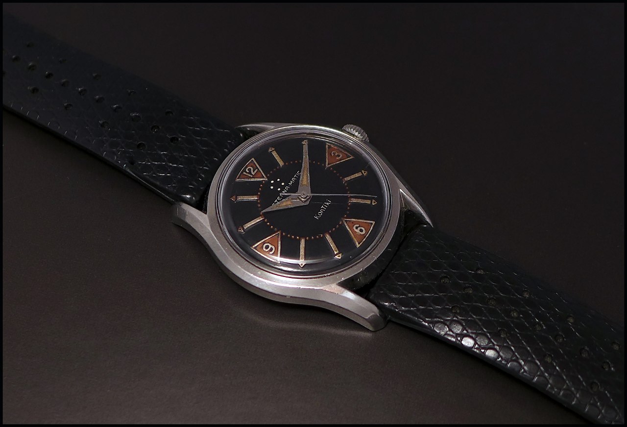The case back has the symbol of the Kontiki engraved, even if it is not that evident on that picture.