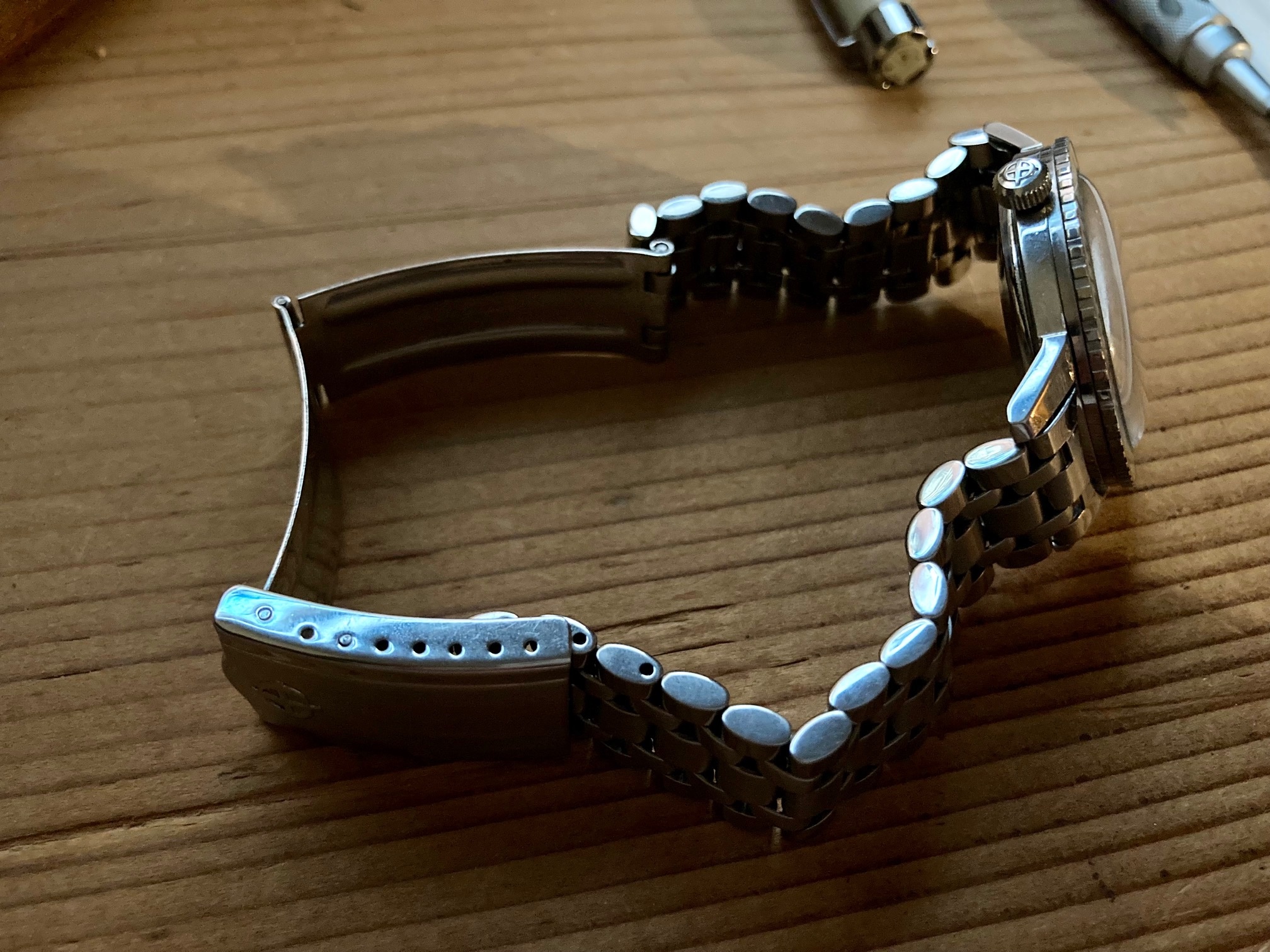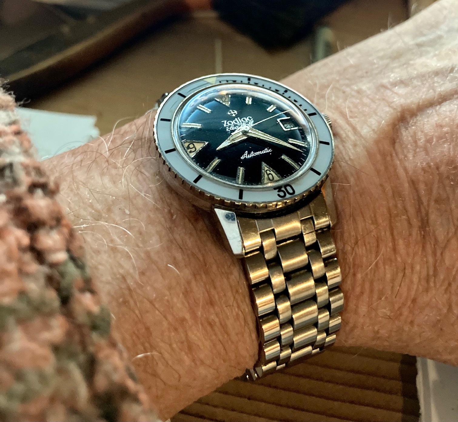 Showing the plexi and ample patina on the dial and hands. Always had a soft spot for Zodiac but yet have tobadd one to the collection.