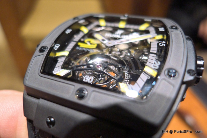 Minute train is inside. Barrel on top, hands, numbers - all Hublot, and legibility is very good.