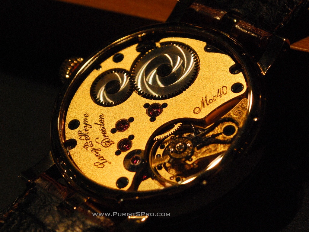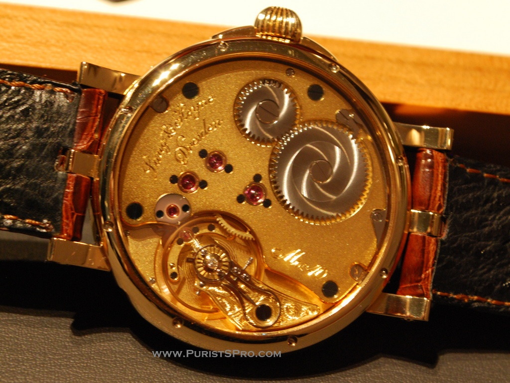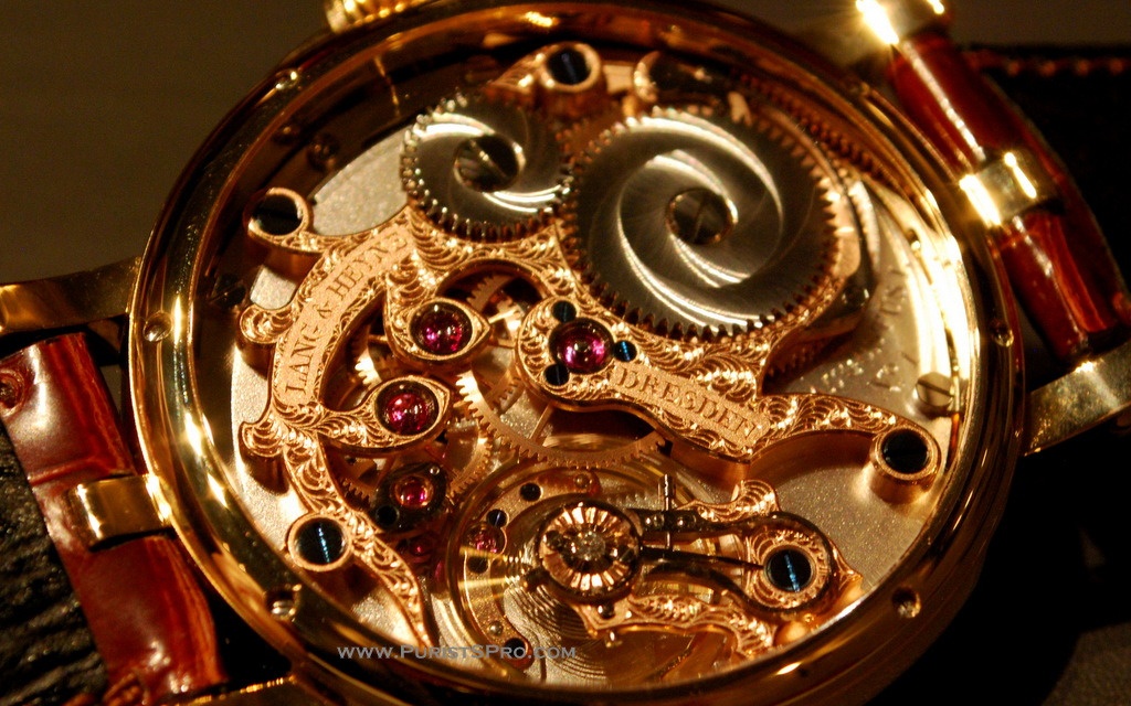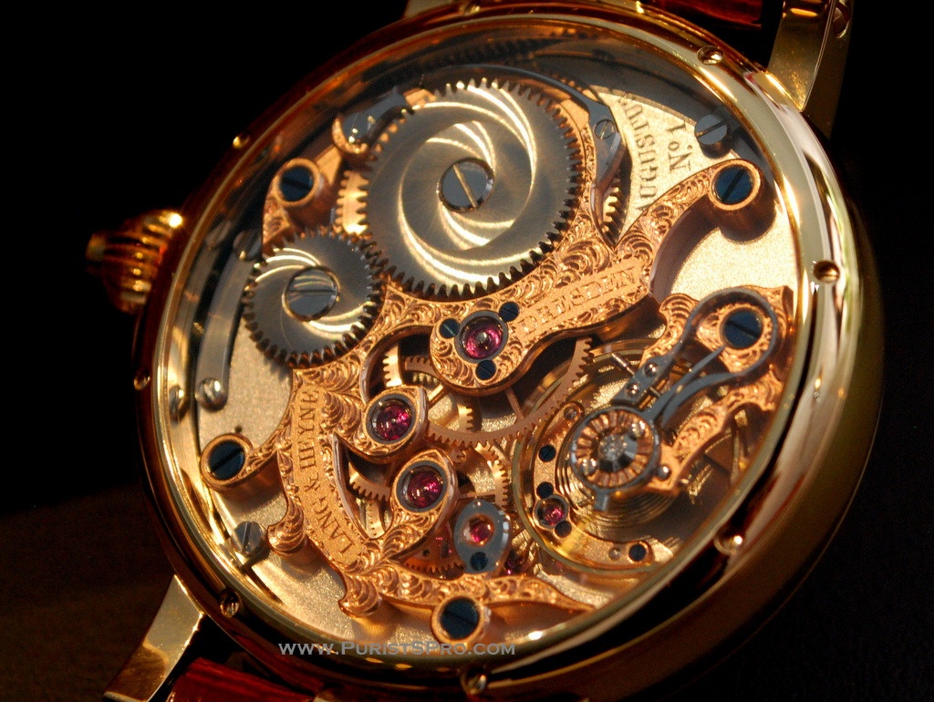 The complication is invisible under the dial which leaves the bridge side free for the exceptional decoration for which Marco Lang's watches are known.