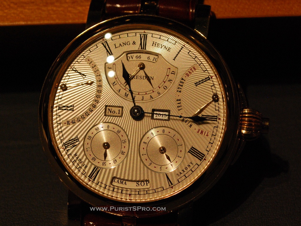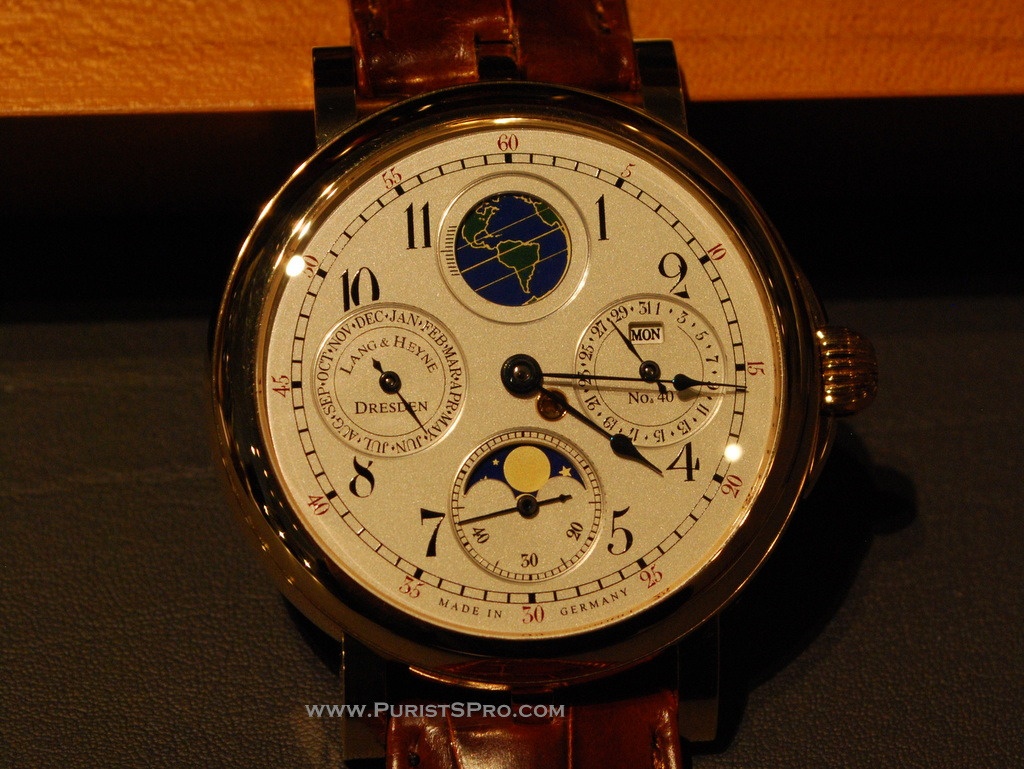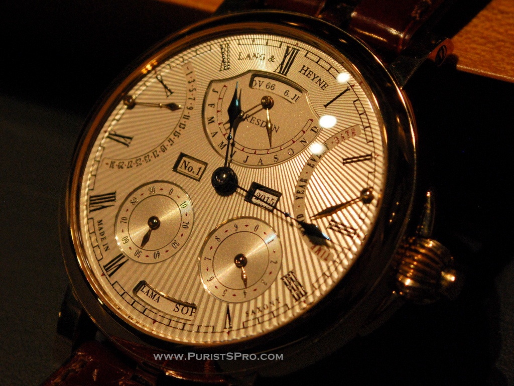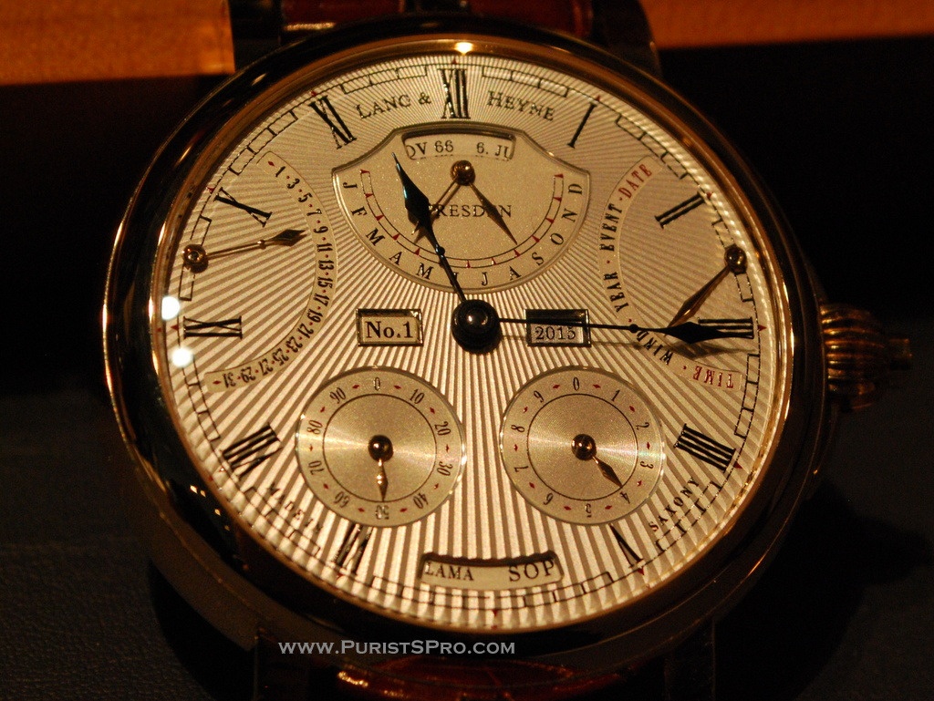 This year Marco Lang of Lang & Heyne showed his new complication the Augustus which calculates the age of people who are important for you. This watch is programmed with the names and dates of the those people when it is manufactured . Then you always have this information as well as their age with you when you travel. As each watch will be made to order each owner can have their watch programmed as they wish. Of course the entire calculation is completely mechanical, so the programming is not trivial.