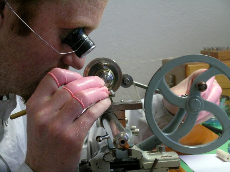 Christian is turning with the hand. It's rare as most of the watchmaker would prefer the motor. He prefers to adapt the speed this way, although it requires a good experience. Well, he surely is !