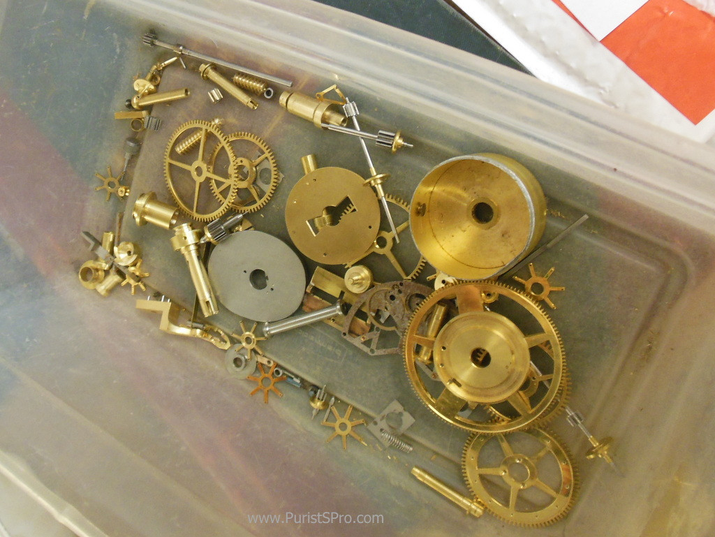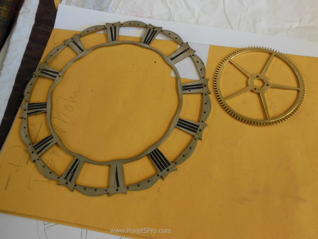 Parts from a clock movement from about 1800 which David is restoring and making a copy. This for a pair of supposedly identical clocks, of which one had had the original movement replaced at some time.