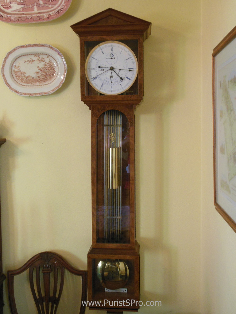 A perpetual calender, moon phase clock with a grid iron temperature compensating pendulum made during his time in Perth Australia.