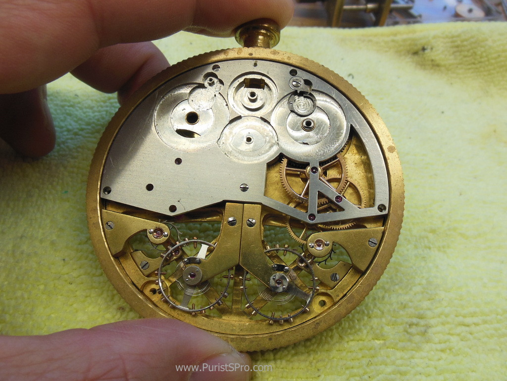 On the bench we also find a pocket watch prototype. The double movement will show mean solar time and also sidereal time.
