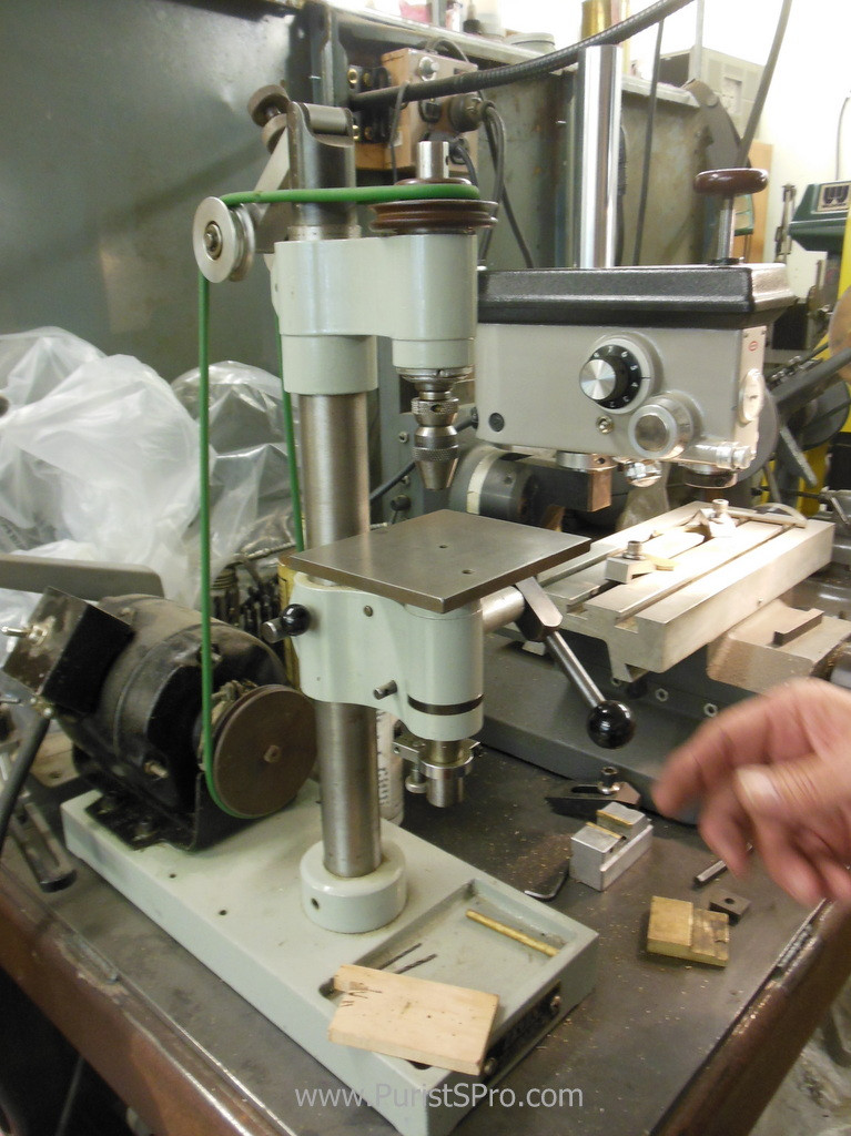 Of course he is well equipped with the tools of the trade. This Wähli lathe is of a type I have never seen before. It is possible to raise and lower the hight of the headstock. This allows many working configurations that are hard to do on a standard lathe.