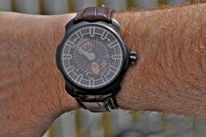 When I first was thinking about a Harvest Moon, I had a hard time finding photos. Now I suspect it may because there are so few of them. Mine is number 6. But I also suspect it may be because the watch has a subtleness in texture and coloration that is difficult to capture. It's softer in real life, has depth, and changes with every tone of light. Hardest watch I've had to photograph. Here's my best effort. Oh, but to avoid any doubt, let me say I adore it! The enigmatic moonface, the grill (and the inspiration for it), the conceit of the Harvest Moon and its expression in the red gold moonfaces. Many watches are beautiful. This is, and while it may be modern and industrial, it is also, to me, romantic. And it has a romantic song to go with it (Neil Young's Harvest Moon).