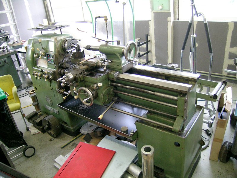 Aciera F1 machine in green and a Hauser jig borer machine with the big brown wheels