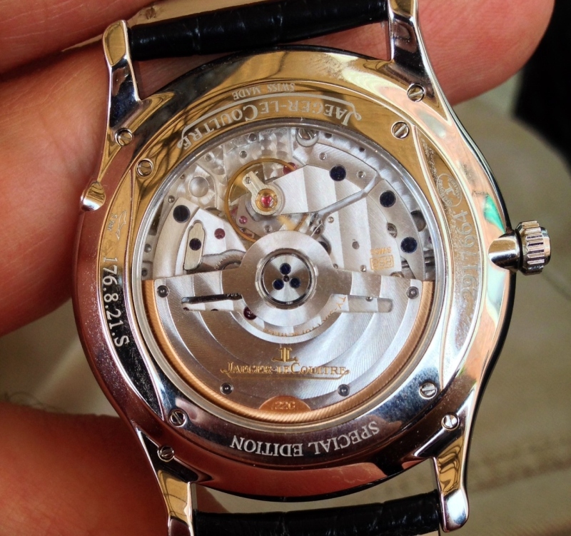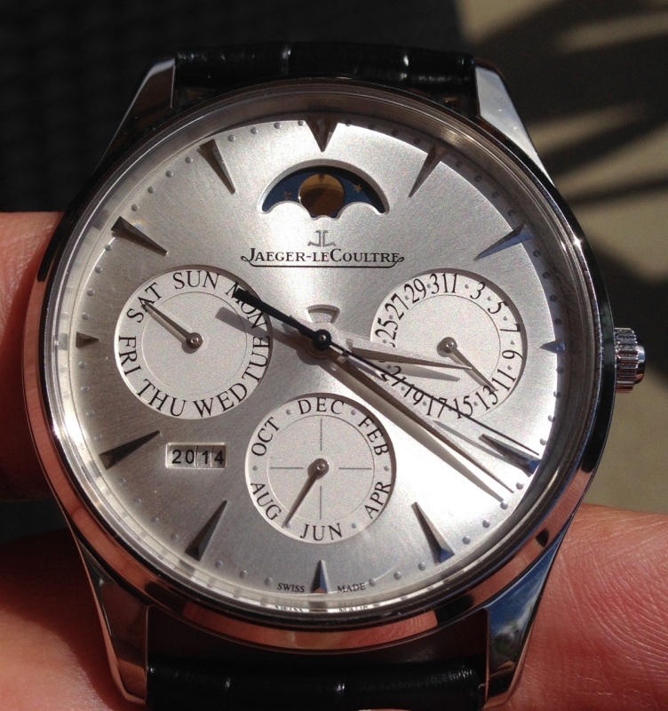 The watch arrived in the classic JLC packaging and has been running non stop now for a week. Adjustment was a breeze, since all elements of the perpetual calendar are adjusted through a single pusher at the 8 o'clock position. There is a danger zone during the night, while no date adjustment can be made without disadjusting the mechanism. The watch feels quite thin and it sits perfectly on my medium wrist.