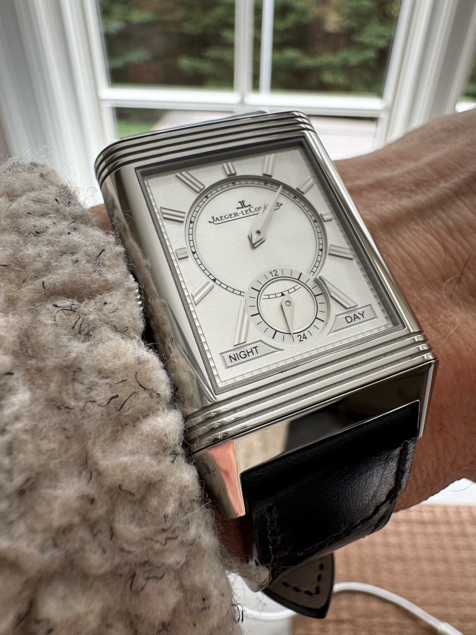 Explore the Jaeger-LeCoultre Reverso 1931 Trioface through collector Filip's photos and community insights on its rarity, burgundy dial, and two-hand simplicity.
