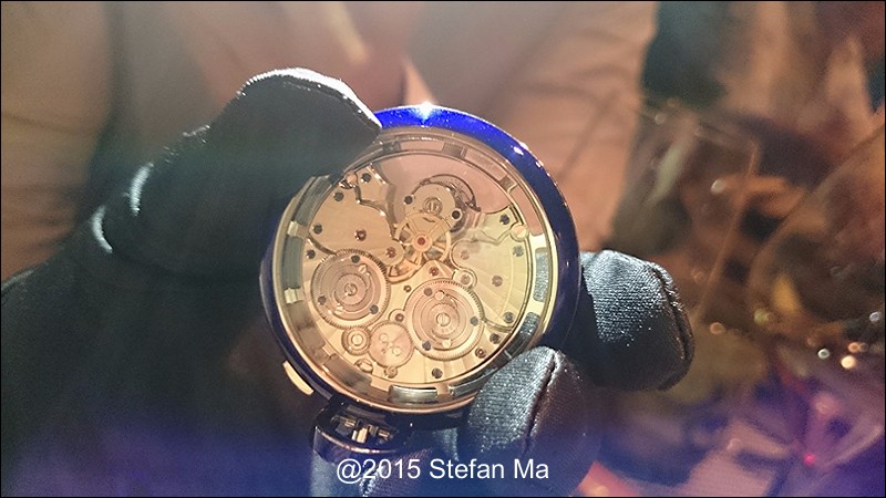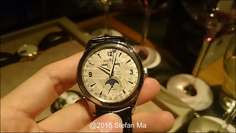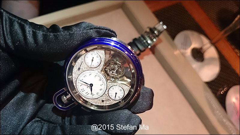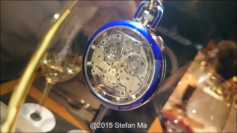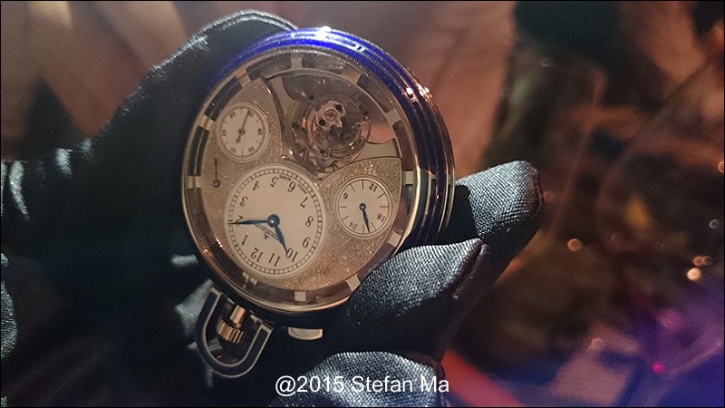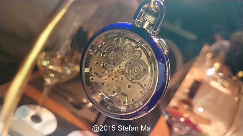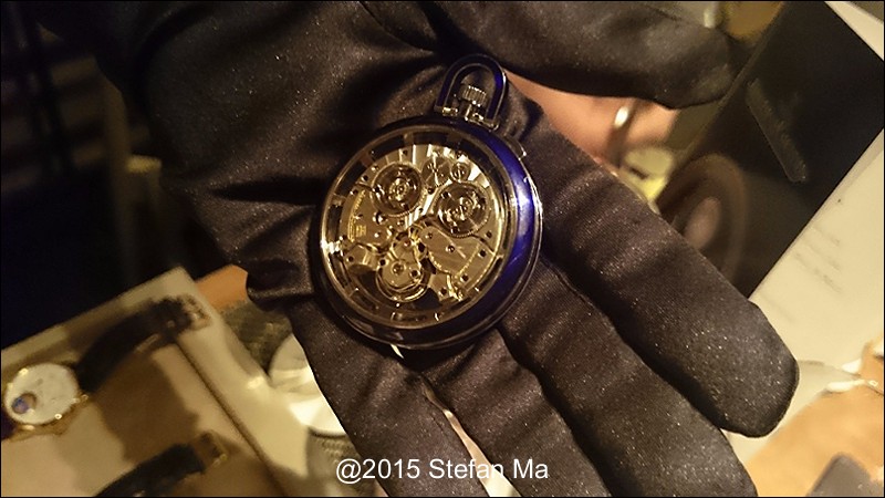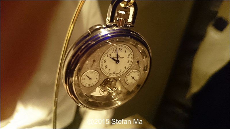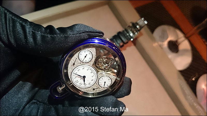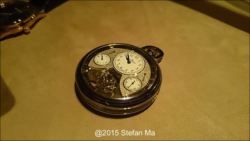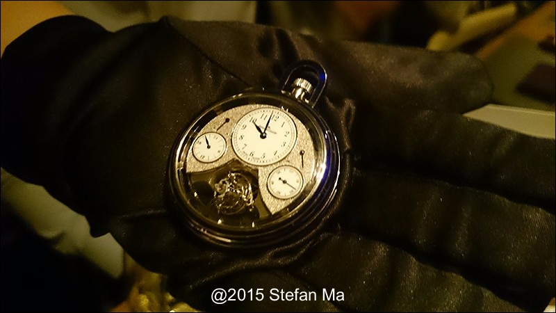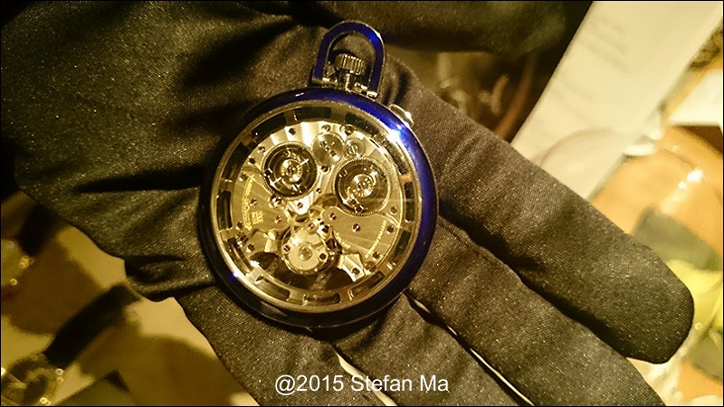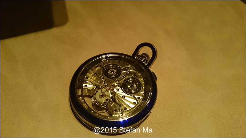 if you have been following what novelties made by MJLC in each SIHH, you would definitely remember in SIHH 2014, MJLC had launched a pocket watch which housed with Duometre Spherotourbillon in a silver dial and grand feu enamel sundials. as told, it is in white gold and in 47mm in diameter. if you look at the subdial at 9 position, it shows the 24 hours which means to use GMT in different timezone. besides, there are two little hands to indicate the power reserve at 10 and 2 positions which supplies separate power for the time clock and also for tourbillon itself respectively. only three pieces of this grand creation were made. as also told, the first two pieces have been sold, and now only one last piece left and still is available. this last piece is currently on world tour and just arrived to Singapore Orchard ION Boutique yesterday. was honored to have a chance to view it and even hold it on my hand which gave me stunning and wonderful feeling that cannot use words to describe it. without further ado, I have taken some pics of this amazing masterpiece using my mobile phone to share with you guys here, but the quality of the pics is not that great, but still it does show the sublime face of this pocket watch. hope you will like and even love it as much as I do!