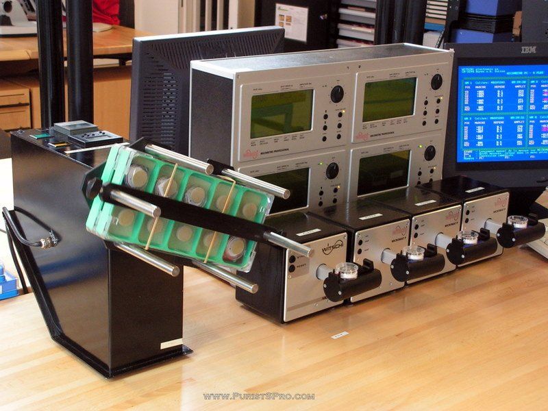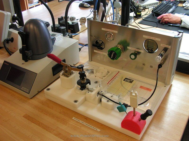 Here we see testing equipment for both pressure, watertightness, and underpressure, to test the fitting of the glasses.
