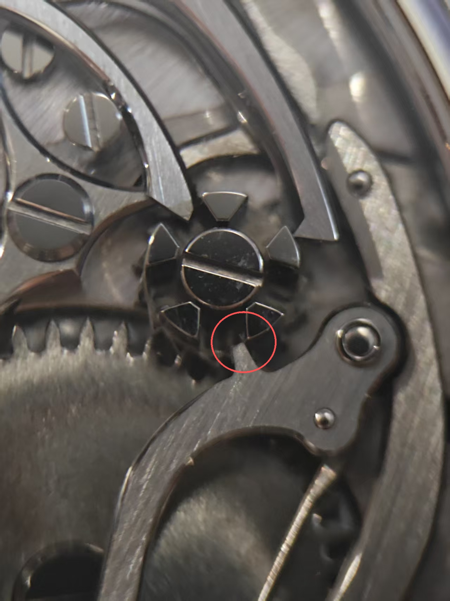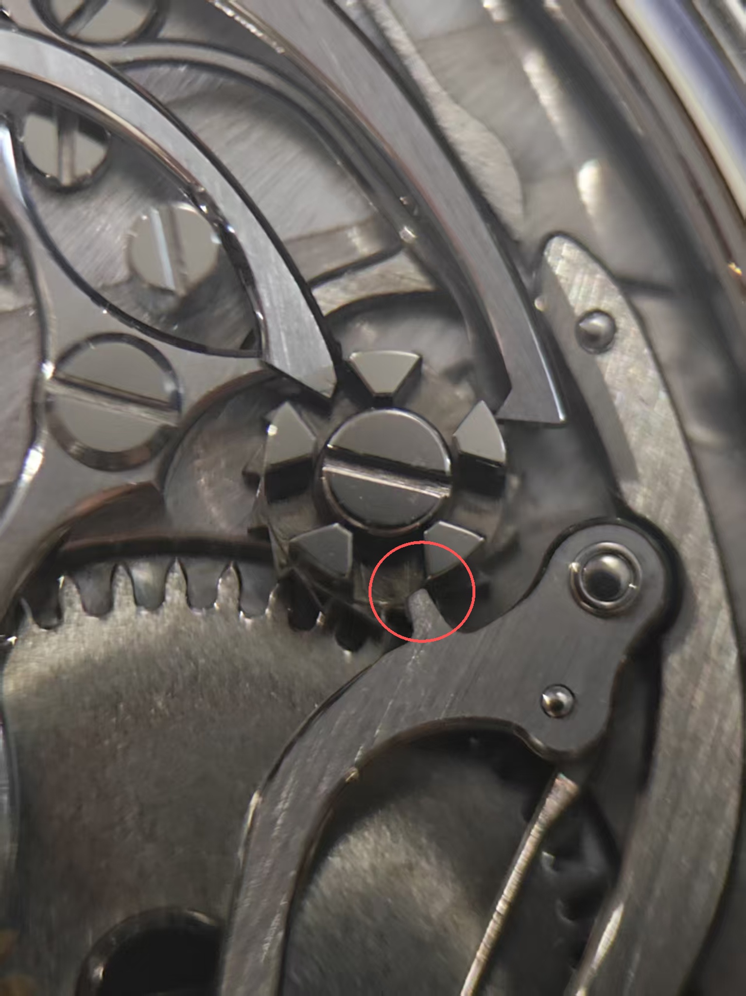 I find one issue that bothers me a little when I use the chronograph function. The start and the reset of the chrono are perfect, very crisp. However, when I stop (not reset) the chrono, I feel and hear a double click. Actually, I can push it half way in, it click once (I will refer it as "the first click"), but nothing happens functionally. Then, I release the pusher, and push it again, it clicks again (second click), it stops the chrono instantly, as I expected it should be. This makes me think the first click should not exist if it works properly, and I try to study such issue myself.