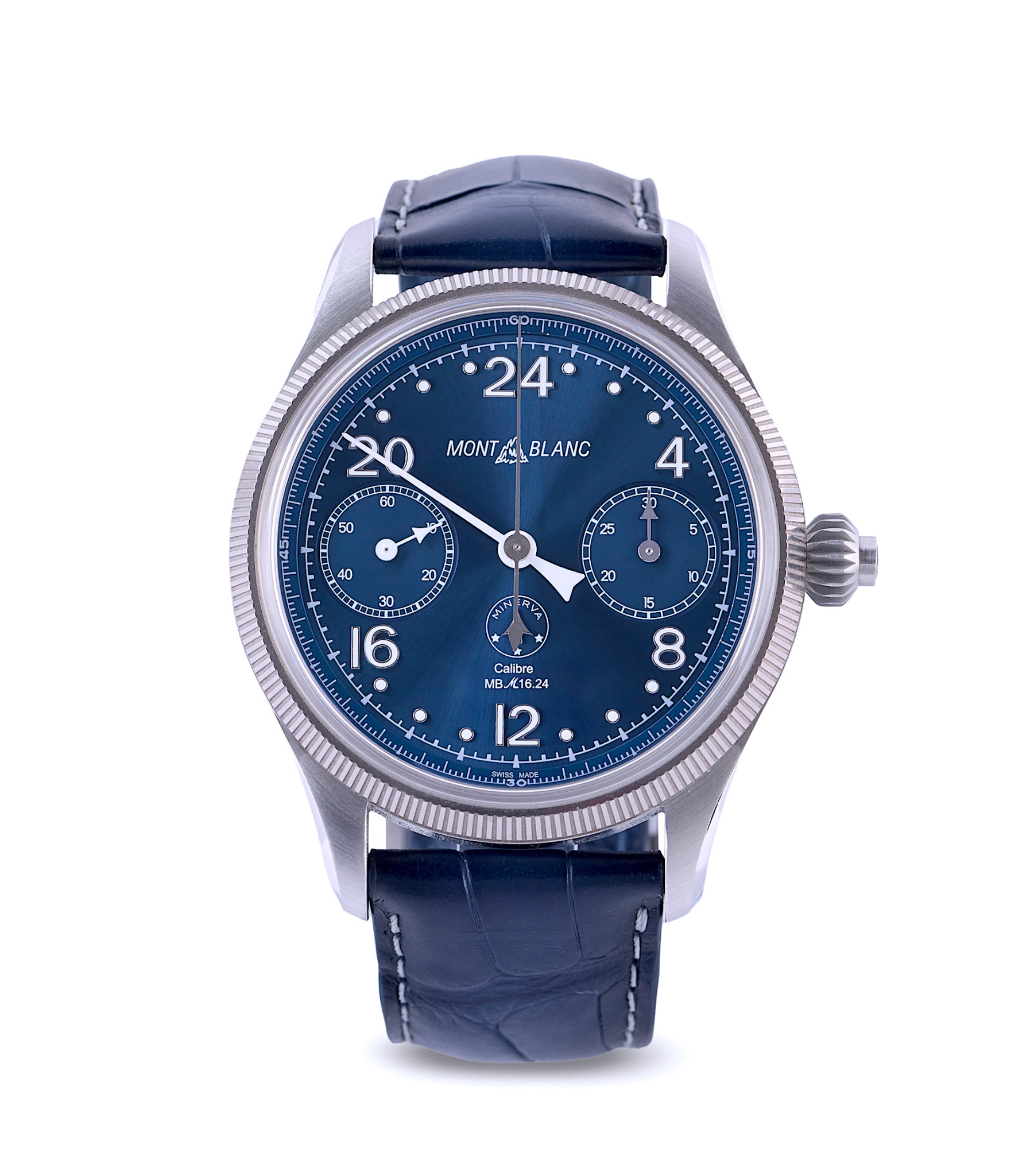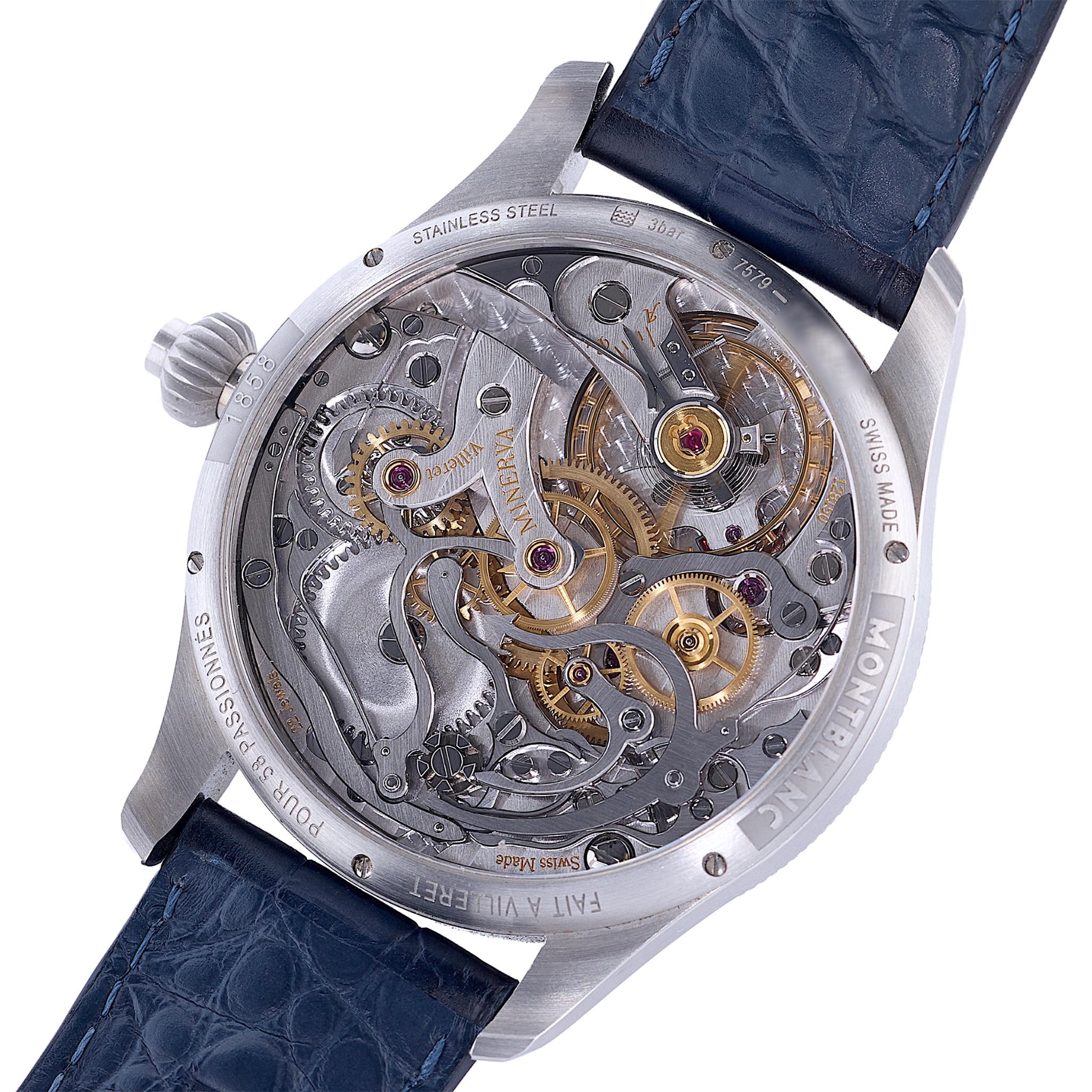 43 mm steel case, 58 pieces for the Club Minerva, whit gold bezel, and an original way to display time on 24 hours, although not easy to read since you only have one hand for the hours and the minutes.