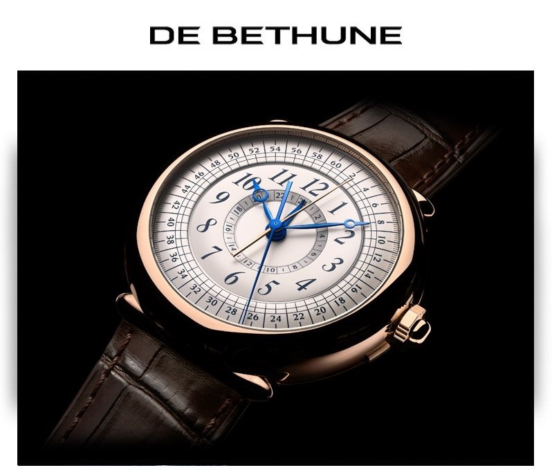 Introducing De Bethune's neo-mechanics Twelve years ago David Zanetta, an art lover and connoisseur of traditional watchmaking, and Denis Flageollet, an innovative designer and constructor of watches, set up the De Bethune project, ranging from the development of watchmaking techniques to research applied to the horological arts. Their research follows on from that undertaken by the great horologists of the age of enlightenment, while assimilating the new technologies and materials to which the fundamental calculations and principles of conventional mechanics have been applied. The various innovations emanating from the De Bethune laboratory not only bear witness to these intentions, they also express the conviction that there is much unexplored territory in the field of watchmaking technology. Work on the regulating organ that is at the heart of every watch obeys well-known physical properties: inertia, mass, elasticity, surface friction and magnetism. Fundamental to the improved precision and efficiency of watch movements are such technological advances as the patented balance-spring with flat terminal curve, balance-wheels in silicon and white gold or in titanium and platinum featuring maximum inertia for a minimum weight, as well as the development of a real tourbillon for the wrist in silicon and titanium. The DB29 Maxichrono Tourbillon, the result of seven years of research and development, is the only one of its kind. This exceptional patented chronograph, packed with innovations, embodies the essence of De Bethune's watchmaking. A mono-pusher chronograph The rose-gold case of the DB29 with its smooth curves features the brand's trademark cone-shaped lugs. The double case back of this time-measuring instrument is fitted with an invisible hinge so as not to detract from its clean lines. A single push button, coaxial with the crown at 3 o'clock, operates the chronograph. Five central hands The design of the DB29 Maxichrono Tourbillon's dial with its five central hands aims to make it easier and more attractive to read the chronograph indications by doing away with the small subdials of the conventional chronograph. The hands that give this watch its identity are designed to follow the different shapes and curves of the silver-toned dial. They are all in hand-polished steel that has been flame-blued by the company's craftsmen, apart from the chronograph minutes hand, which is in rose gold. Measuring long elapsed times: 23 hours, 59 minutes and 59.9 seconds This instrument measures long elapsed times with counters for 60 seconds, 60 minutes and 24 hours. The central chronograph hands are mounted on co-axial stacked wheels, a complex system that requires real technical expertise to achieve. Thanks to the precision ensured by the De Bethune 30-second Tourbillon in silicon and titanium oscillating at a rate of 36,000 vibrations per hour – one of the fastest and lightest on the market with its 63 parts weighing a total of 0.18 grams – time is accurately measured and the maximum duration of elapsed-time measurements amounts to a generous 23 hours, 59 minutes and 59.9 seconds. A push button at 4 o'clock opens the cover on the sapphire-crystal glass of a titanium case back to reveal the modern construction of the calibre DB2039 movement with its polished steel bridges, the tourbillon at 3 o'clock and the complex mechanism of an innovative time-measuring system featuring three column-wheels. |