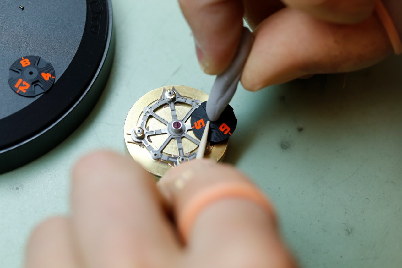 - Adjusting the hours carousel and watch assembly