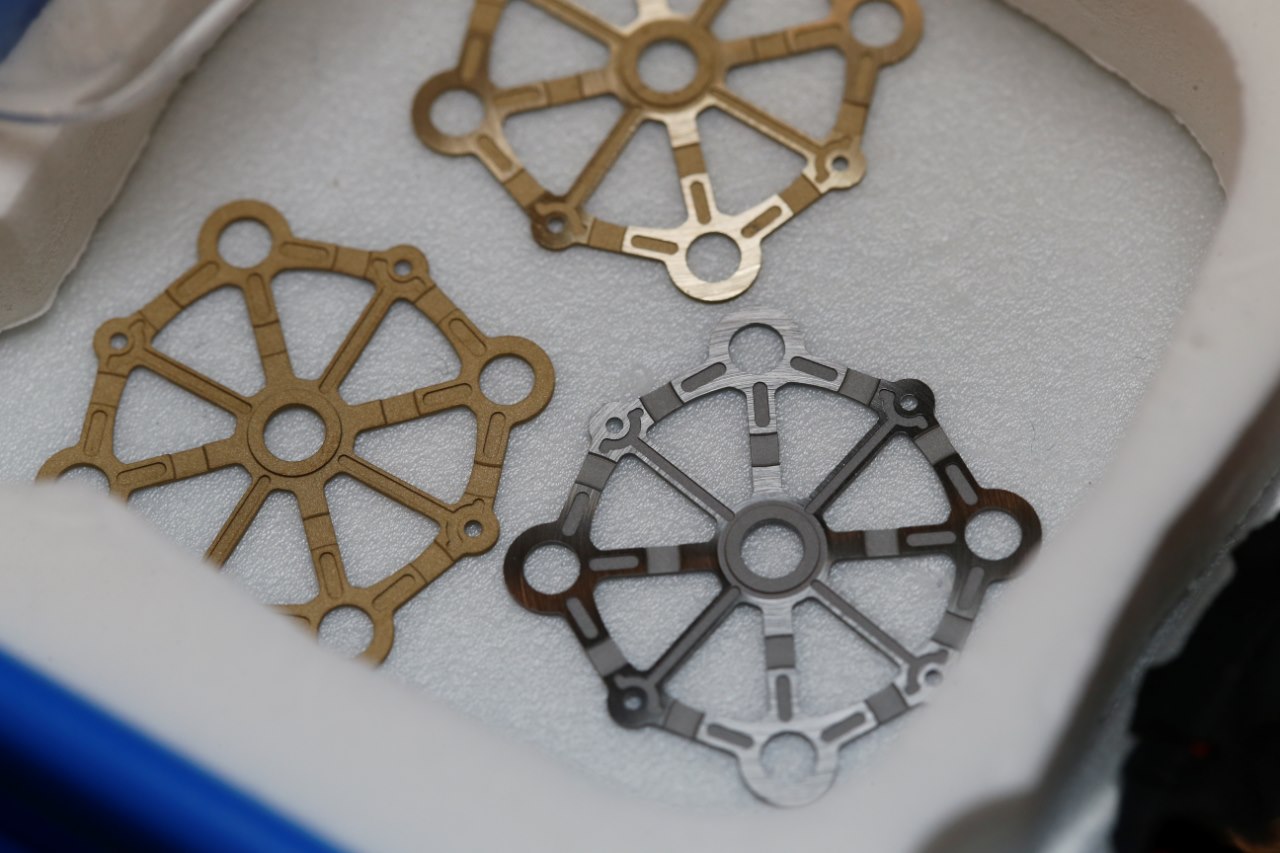 Materials: Satellite hours driven by Geneva crosses in beryllium bronze; Orbital structure of PEEK (polyetheretherketone)