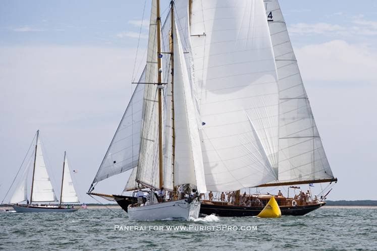 Sponsored by Officine Panerai, the event is hosted by the Nantucket Yacht Club, Great Harbor Yacht Club and the Nantucket Race Week Committee to benefit Nantucket Community Sailing. The Opera House Cup regatta started the day with light winds between 7-10 knots out of the south to southeast, with a sea-breeze filling in to 11 knots in the afternoon, resulting in an exciting and challenging day of sailing as the beautiful yachts fought for their position in the race. The fleet consisted of 57 boats with a range of classics dating back to the 1899 yawl Galatea (a previous winner of the Panerai watch where the owner single-handedly sailed from Antigua to Newport to participate in this event) to the newly built Spirit of Tradition W-Class 37' Race Horse launched in May, 2010. This annual event is very popular with racers and spectators attracting an impressive range of yachts - from the beautifully restored 1950 yawl Bolero to schooners such as General Patton's famous When and If .