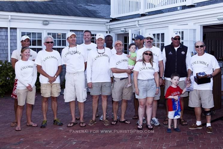 The successful week of racing was wrapped up Sunday night by the highly-anticipated OHC Party and Awards Ceremony sponsored by Officine Panerai. It was a beautiful summer night where the sailing community came together to celebrate the previous days' events. The ceremony was held at Jetties Beach under the tents with a lively crowd after an exciting and close week of racing. The 46 ft W-Class Mustang , skippered Harvey Jones, Won the Spirit of Tradition Division, while First Tracks was the winner of the Alerion Class and the all female crew on Columbia took the honor of winning the 12 Meter Class. Each winner of their respective classes was awarded a classically-designed Panerai Barometer. The 62 ft. sloop12 Meter Heritage had the best elapsed time in the 16.55 nautical mile race but on corrected time dropped down to 10th place overall. The Robert H. Tiedemann award, presented to the vessel with truly authentic preservation and/or restoration went to the stunning 1913 New York Yacht Club 50 Spartan . Silent Maid , the 33 ft. Cat boat along with the 32 ft. Gaff Sloop Naiad and 68 ft. 12 Meter Gleam were given Performance Awards for exceeding expected performance for the conditions. The much sought after Gwen Gaillard "Spirit of The Race Award" was presented to the crew that exemplifies the Spirit of the OHC and this year awarded to 58 ft. Gaff rigged sloop Merilee . The moment everyone was waiting for came at the end of the ceremony when the proud owner and skipper Jesse Smith of Totem was awarded the much-prized perpetual trophy- the original silver wine bucket donated by Gwen Gaillard and the stunning special edition Panerai Radiomir Regatta 1/8th Second Titanio – 47 mm (PAM343).