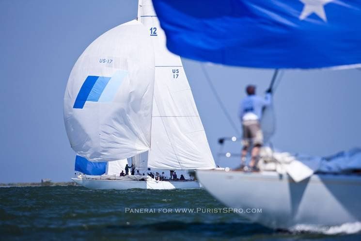 The competition amongst the 12 Meter class was very close with an excellent start by the all female crewed Columbia helmed by Linda Green, a local Nantucket summer resident and her crew of 16. Columbia squeezed Onawa out during the start, making her hit the mark and forcing her to do a 360. The 12 Meters continued to have an intense match race especially between Heritage and Valiant , which unfortunately ended up in a collision of the two boats and forcing a protest in which Valiant was, regrettably, disqualified. Columbia made a wise decision to take an alternate course to the others in the fleet, in which they had a nice lift to the finish line securing first place on corrected time. The first start consisted of the larger yacht in the competition with the staysail schooner Ashanti IV , being the largest in the fleet at 102 ft. and was over taken by the newly built 100 ft. Sloop Gaia who increased her lead and took line honors.