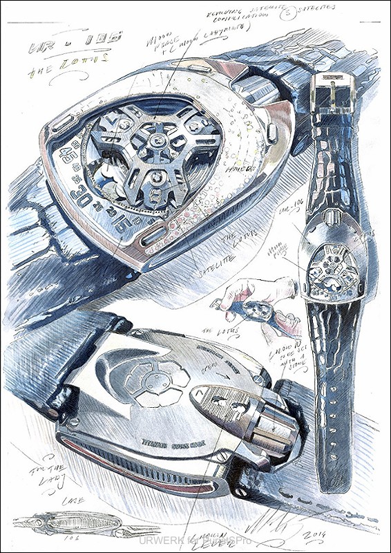 The UR-106 “Lotus” features the brand’s signature satellite hours in a guise never before seen. Three satellite hours wander across the dial to create the most graphic of horological blooms. “We never made watches for men and watches for women because we never thought in those terms when we put our ideas down on paper,” explains Martin Frei, the company’s chief designer and co-founder. “We thus embarked on a stylistic exercise that was unprecedented for us. We have of course long considered what we regard as the ultimate challenge, because creating for women is indeed a perilous undertaking. With its glittering gemstones and soft curves we created the UR-106 with one image in mind; that of the lotus flower, which in my imagination represents the beauty of women in all their complexity.”