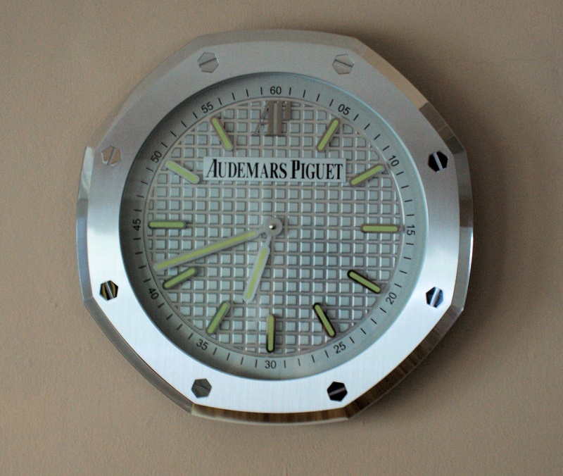 Some up close pics of a silver AP clock. They made some drastic improvements in the latest version, including the "3D" mega-tapisserie as opposed to a flat dial. Again, not sure if it's worth the $4,500 retail, but it is a pretty special clock. I saw this Vacheron clock as well which was pretty unique as well with the Overseas bezel, but the "dial" is a little too plain.