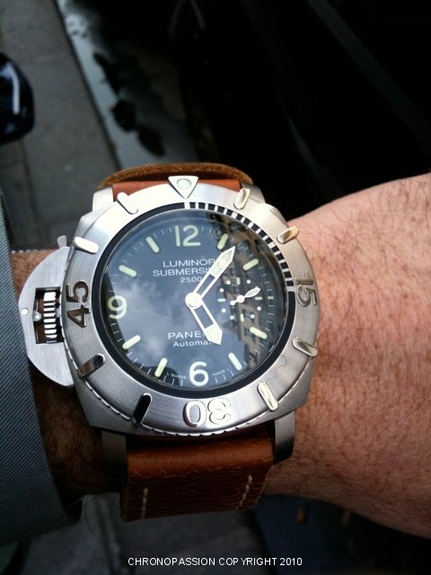 If you like submarine Panerai, this one in 47mm, 1950 Luminor case, titanium, black dial, without date, LEFT-HANDED is VERY VERY NICE and for you. Unfortunately, 47mm in Luminor case does not fit on my wrist, even if I wear a 47mm Radiomir. I always buy a...