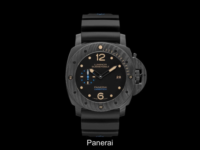 Identified by the reference PAM00616, the new Luminor Submersible 1950 CarbotechTM is fitted with a black rubber strap, personalised for the first time by the OP logo in Panerai blue.