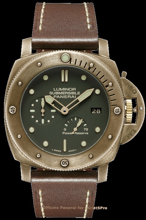 The Luminor Submersible 1950 3 Days Power Reserve Automatic Bronzo (PAM00507) is water-resistant to 30 bar (300 metres) and is completed by a brown leather strap with stitching of a subtly nautical character and a titanium buckle. It is a Special Edition produced in only 1,000 units.
