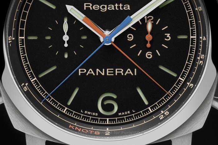 The watch offers a remarkable simplicity of use: To avoid wasting of precious seconds preceding the start of a regatta due to problems with timing gear, the watch displays the remaining time - in minutes and seconds - until a regatta starts. This is done with the central orange chronograph minute hand and the central seconds counter.