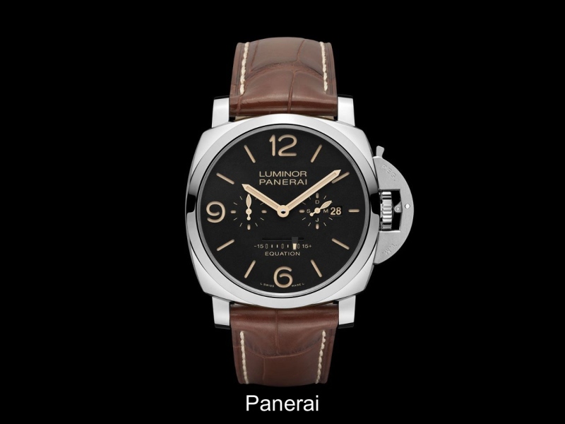 TWO NEW SPECIAL EDITIONS CREATED BY OFFICINE PANERAI WITH ONE OF THE MOST CLASSIC AND FASCINATING ASTRONOMICAL COMPLICATIONS, THE EQUATION OF TIME. P.2002/E MANUFACTURE MOVEMENT, HAND-WOUND WITH A POWER RESERVE OF EIGHT DAYS.