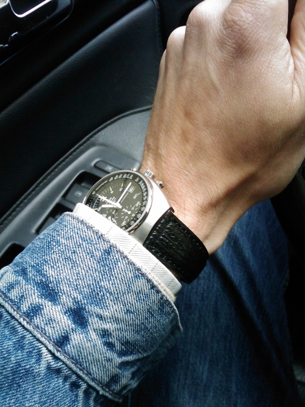 It is a 41.5 mm large and around 15.3 mm thick watch which gives to the wrist a really nice look, whether you're dressed casual or even with a suit (especially with leather straps, mine is shark, as it was the standard leather mount at the time)