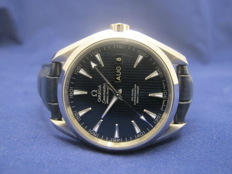 Let's start with the larger version, an Aqua Terra Annual blue dial in the full size 43.5 mm case, by itself . . .