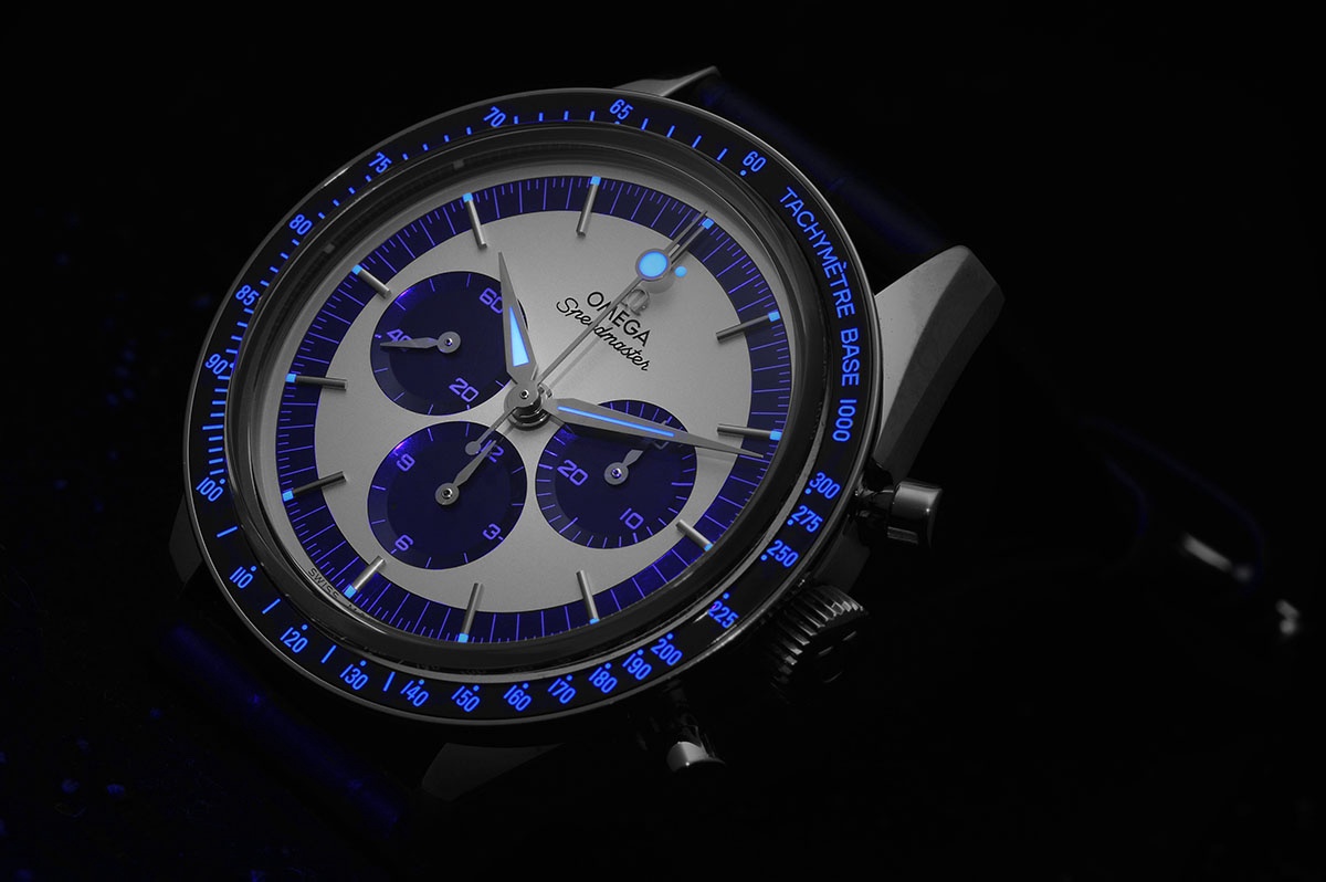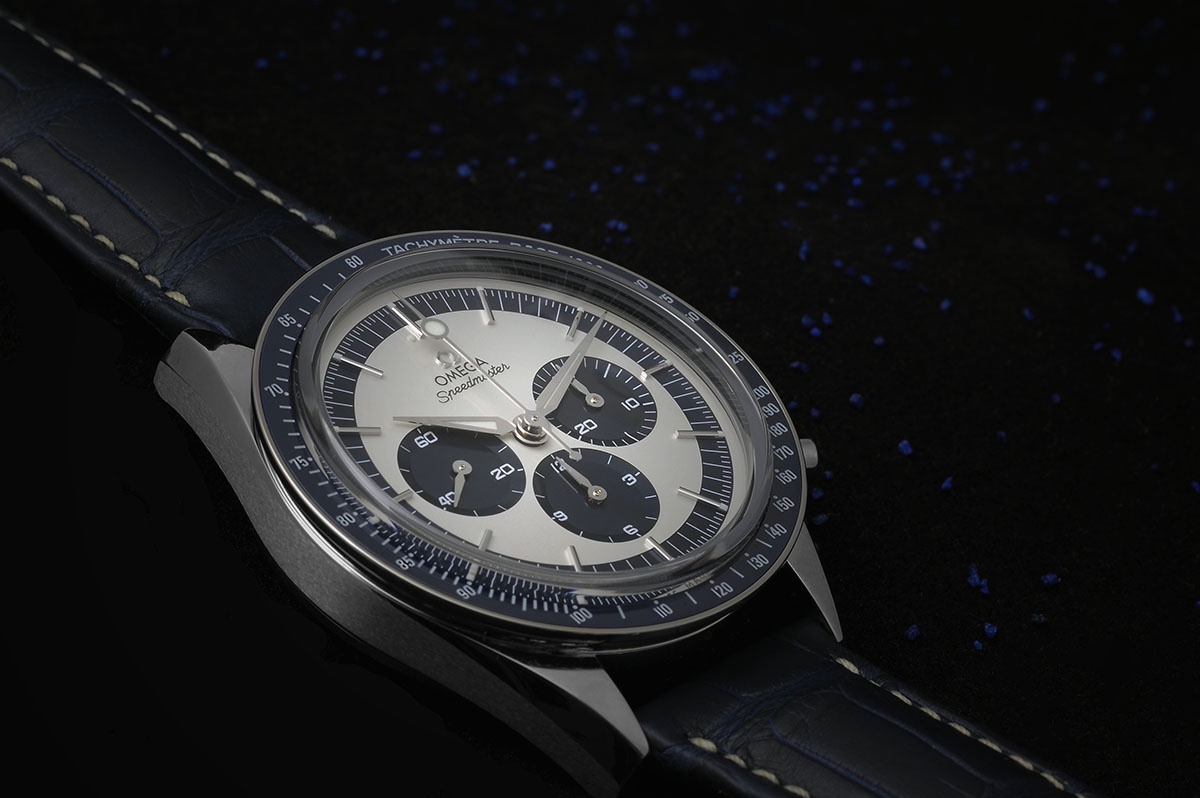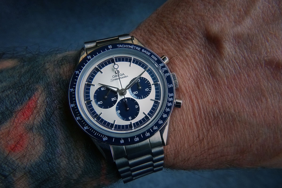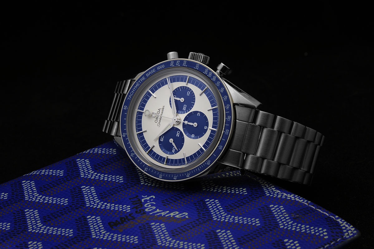 If you haven't figure it out, here it is: A factory fresh Omega Speedmaster CK2998. The blue and silver panda dial really works on this model.