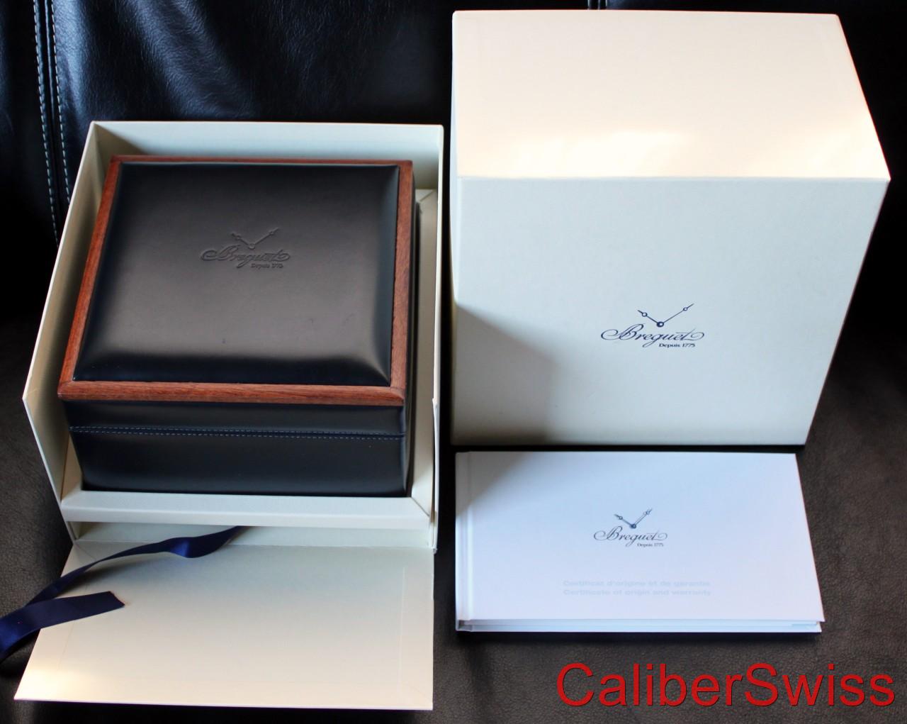 In manufacturer's boxes - a beautiful Breguet wood and leather inner and multi-layered outer, accompanied by an individually numbered warranty bookle. A COMPLETE SET!