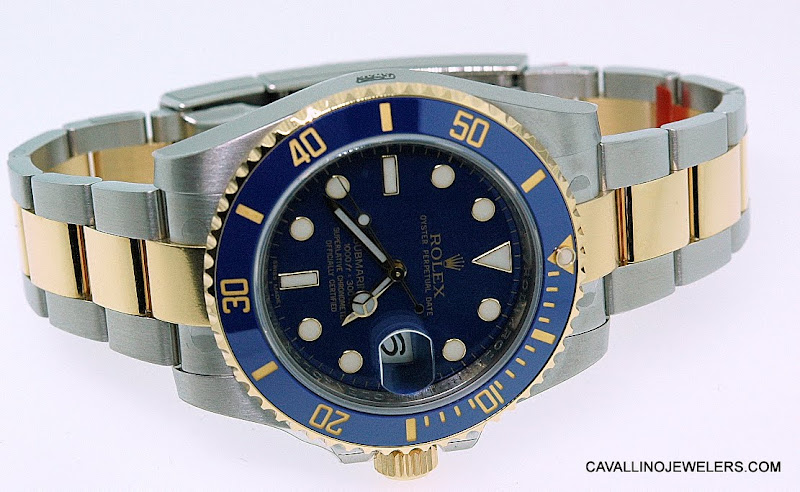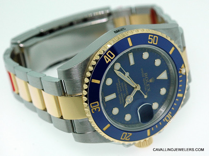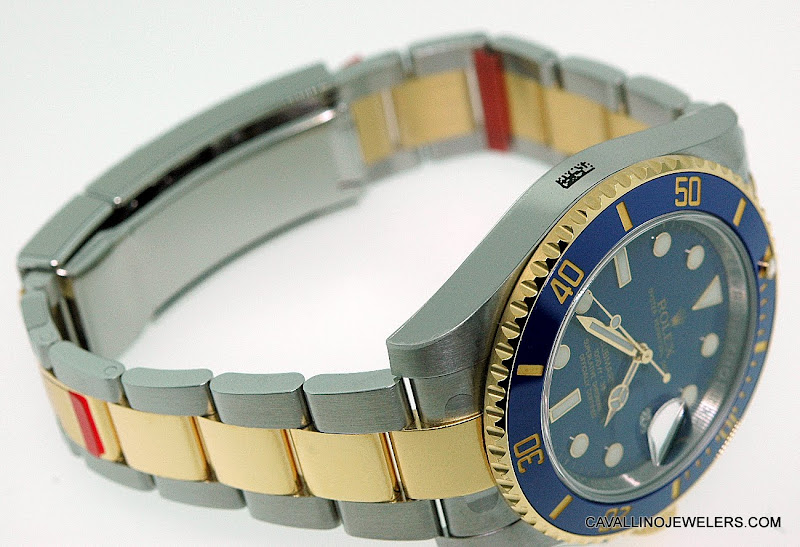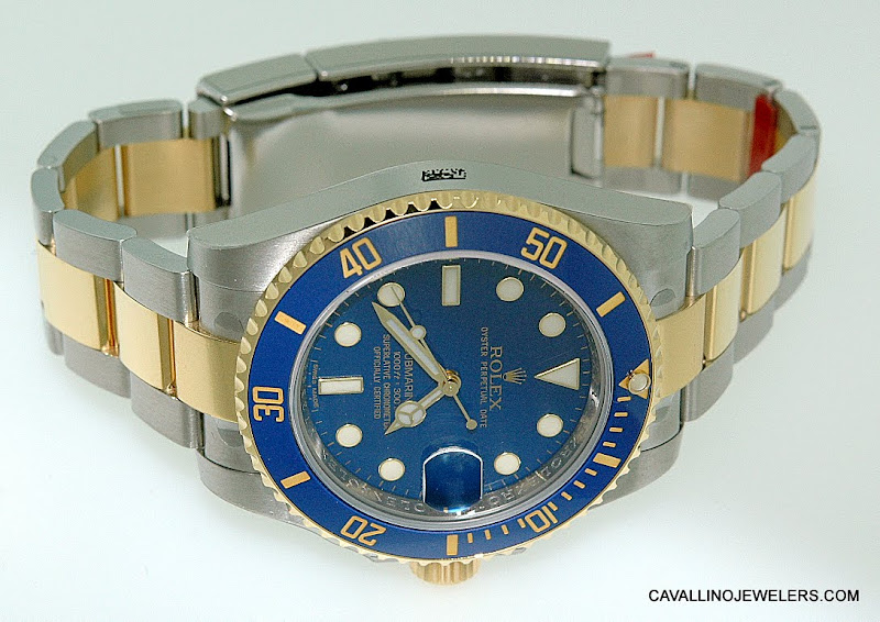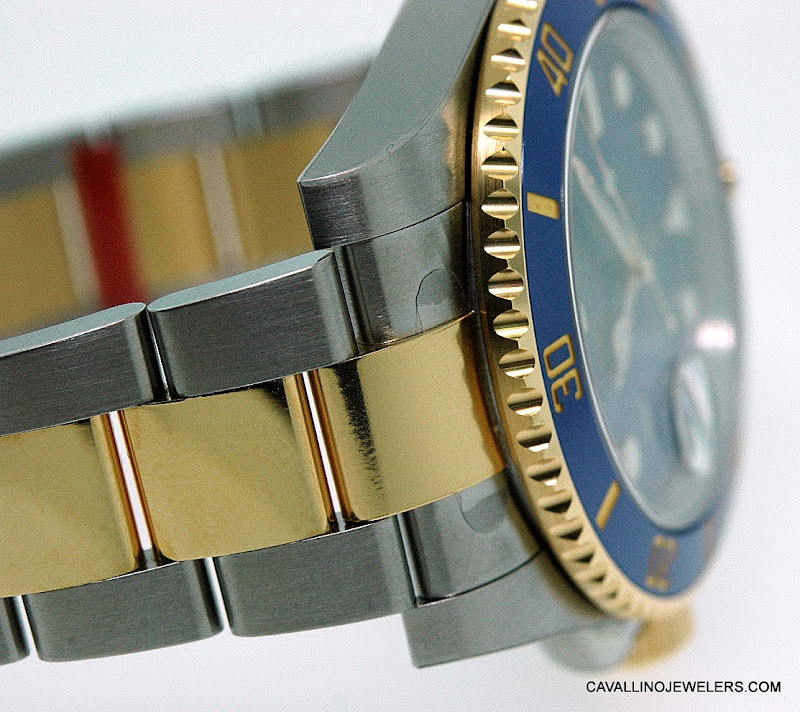 Bezel: Blue, 18K Yellow gold, rotating time lapse bezel.