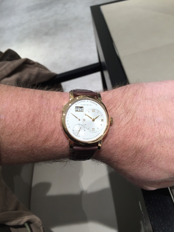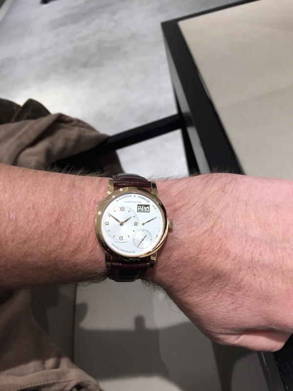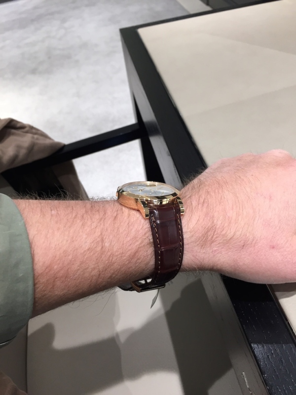As for size, I don't like to wear dress watches larger than 40 mm, so the Grand lange 1 was out.