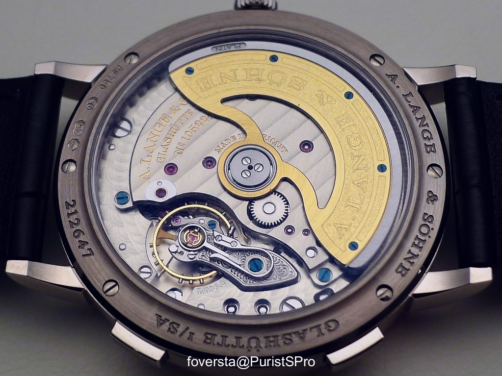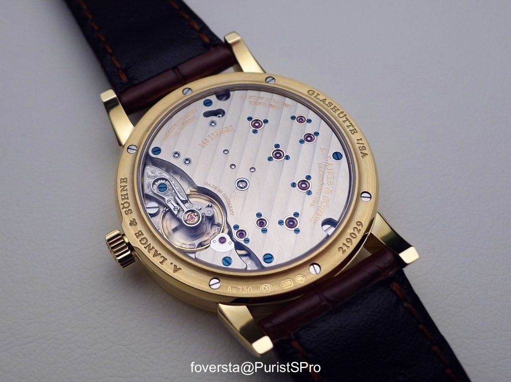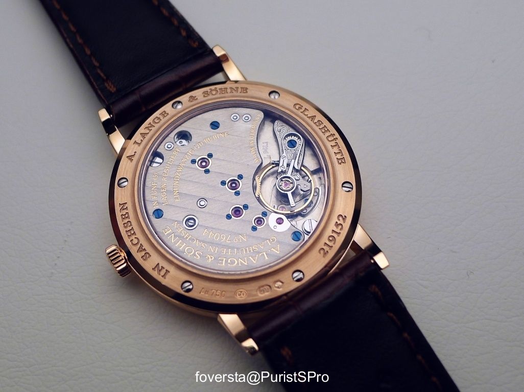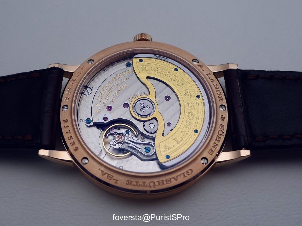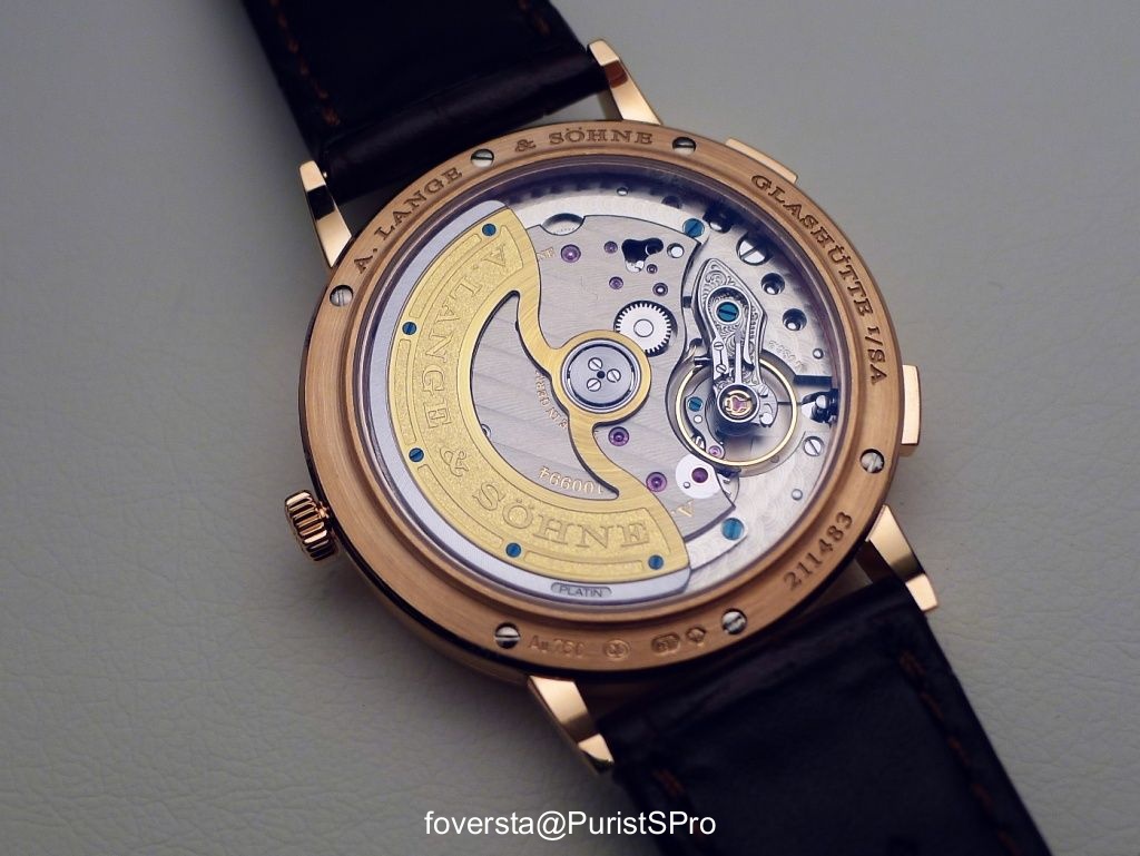 The watch is powered by the caliber L086.1 with a power reserve of 3 days. You know my position about this topic: even if the central rotor automatic movements by Lange are nice and efficient (with an increased power reserve), I much prefer the brave old (and beautiful) Sax-O-Mat! Please... make it back with a simple watch...