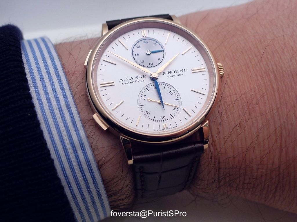 With a 38,5mm case and a brand name written straight in the middle of the dial (like with the first Saxonia), the Saxonia Dual Time becomes now much more attractive at least for my taste.