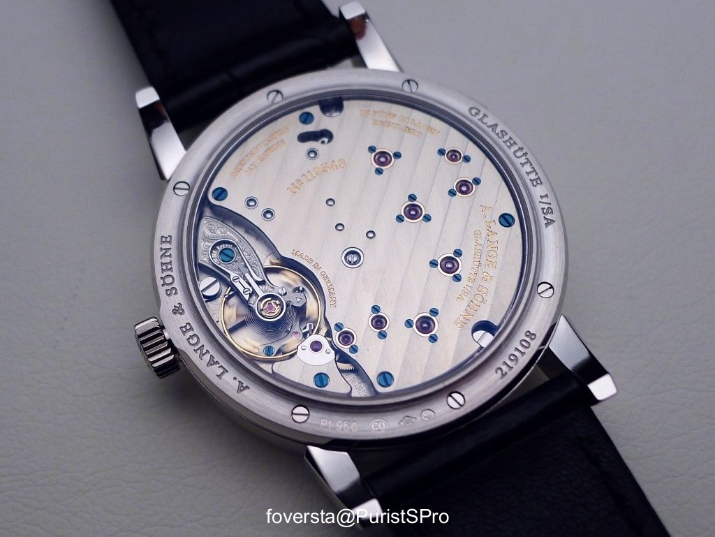You will notice the details inspired by the former Langematik, the extended markers and the numerals at the tens position on the second hand subdial.