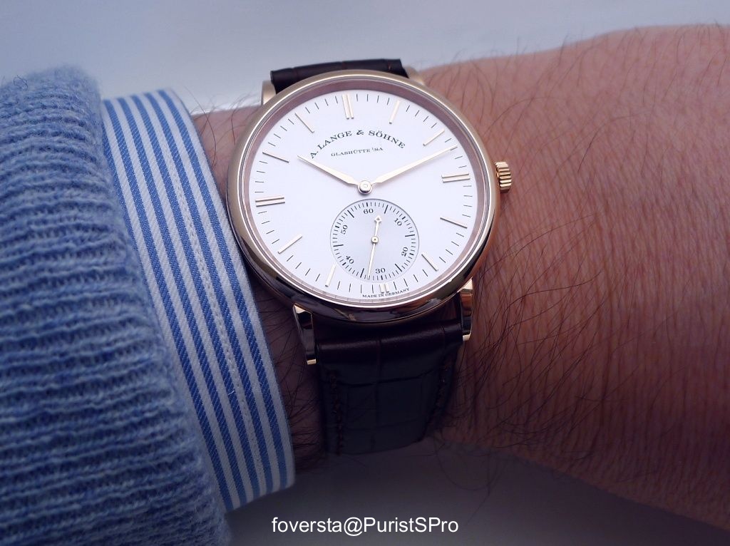 The Saxonia Handwind is available in PG and in WG. Due to the size and the simplicity, I prefer the PG version and its touch of warmth.