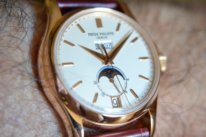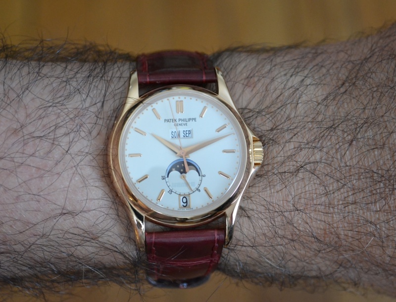 This watch combines several of my favourite choices: annual calendar complication with digital displays fot the date, day of the week and month (that reminds me of the 3448, my absolute graal), dauphine hands, and a decidedly classic Calatrava rose gold case with a sapphire crystal back and a crown inconspicuously protected by shoulder flanks.
