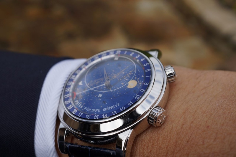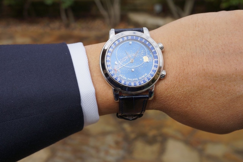 I’ve found that many who shop for watches in the Grand Complications category are enamored with the multitude of features and the wealth of data that’s presented on the dial. Indeed, I might fit that description? As a result, at first blush and without primary experience the Celestial might not seem to offer very much. There’s no sound. There’s no chronographic function. Heck, you can’t even tell what month you’re in? Ahhh, … but that’s the trap. The dial of the Patek Celestial is actually wildly fun. With the stars and the moon constantly moving at different rates, like the sky itself the background of the watch is truly unique each day. In the 6102P the date around the periphery is simply a bonus.